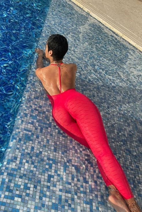 Az utóbbi időben az egyik legnépszerűbb, legsikeresebb és legbefolyásosabb popsztár hatalmas port kavart medenceparti fotózásával. Rihanna egy vörös kétrészes fürdőruhát és egy ugyanolyan színű, csábító jumpsuitot választott.