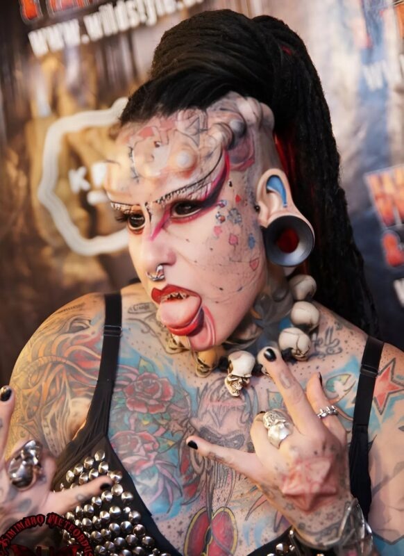 Ma María testének több mint 96%-a tetoválásokkal borított – még a szemgolyói is feketére vannak festve. Közel 50 különböző testmódosításon esett át: titánból készült szarvszerű implantátumokat helyeztek a homlokába, éles agyarakkal helyettesítették a normál fogait, megosztották a nyelvét, megnyújtották a fülcimpáit, és szándékosan sebeket ejtettek a bőrén.