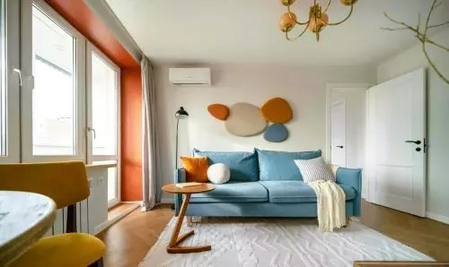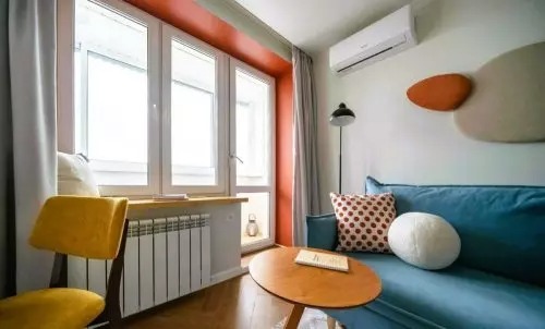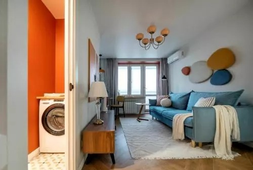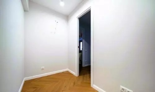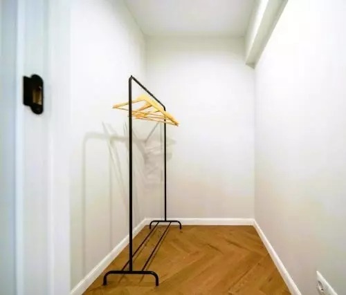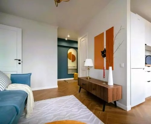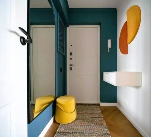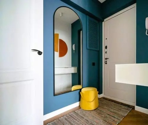A padlót laminált padlóval burkolták, a falakat pedig fehér és kék színűre festették. A bejárati ajtó mellé egy függő konzol került, vele szemben pedig egy nagy tükör. A konyha bejáratát korábban áthelyezték.
