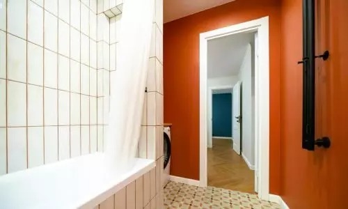A fejében tervei voltak, amelyeket remélte, hogy megvalósíthat. A jövőbeli kialakítás teljesen rajta múlt, és pontosan tudta, mit szeretne. Ennek eredményeként a fürdőszoba mérete nőtt, ami csökkentette a folyosó területét.