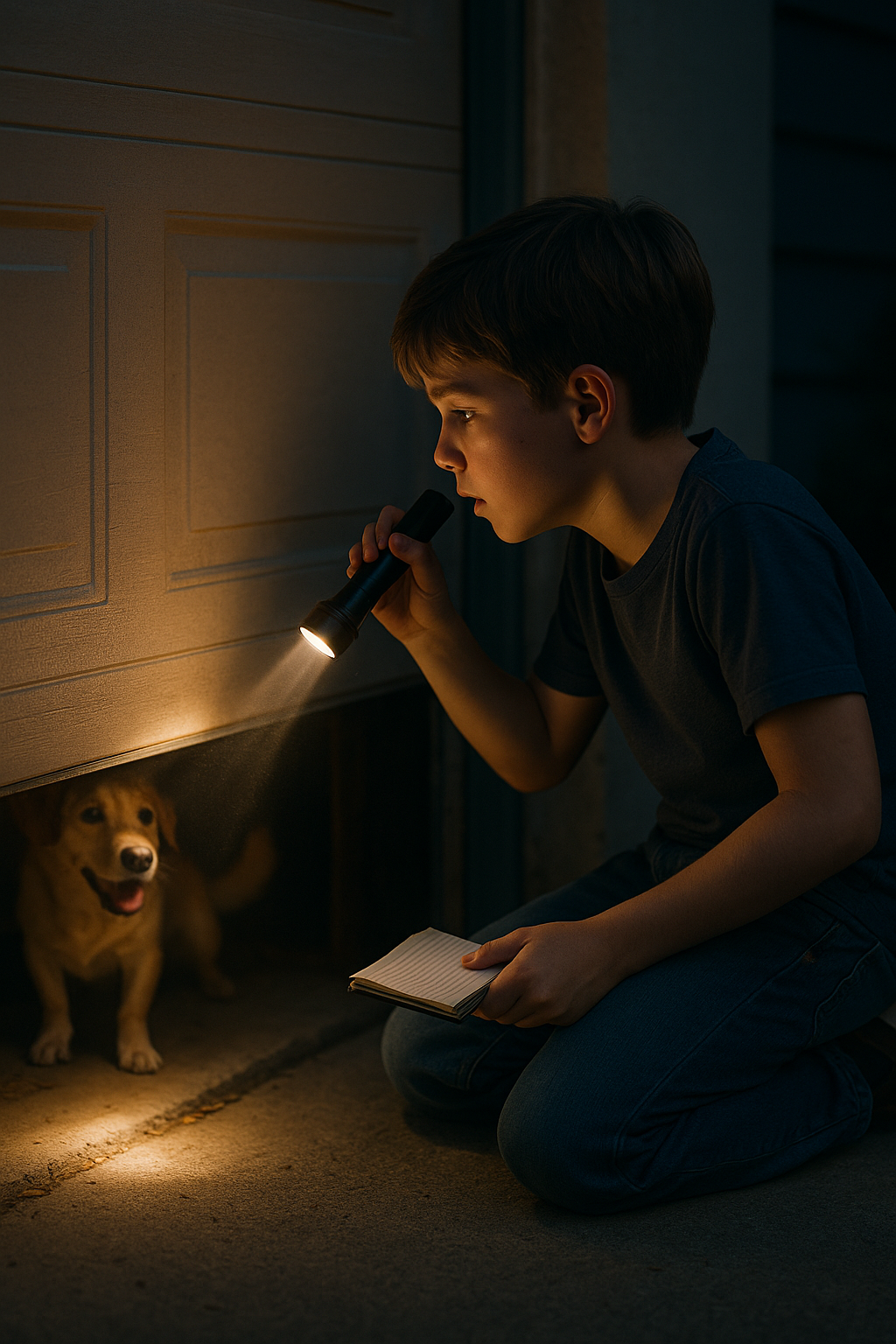 Másnap reggel Tommy bemutatta a bizonyítékait – a mancsnyomokat, a szövetdarabot, a jegyzetfüzetében lévő vázlatokat. A felnőttek eleinte gúnyolódtak. De amikor a rendőrség ellenőrizte, ott volt Max, sértetlenül, de bezárva a garázsban.