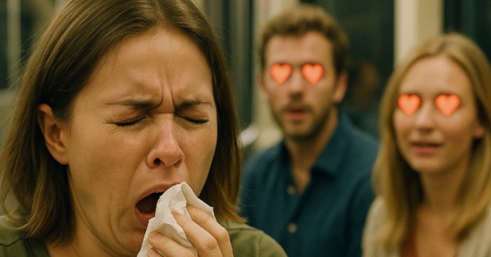Tüsszentettem a boltban. A férfi, aki három sorral előttem állt, hirtelen eldobta a kosarát, odarohant hozzám és megragadta a kezem. „Te vagy a legszebb ember, akit valaha láttam” – suttogta, tágra nyílt szemmel, kétségbeesetten.