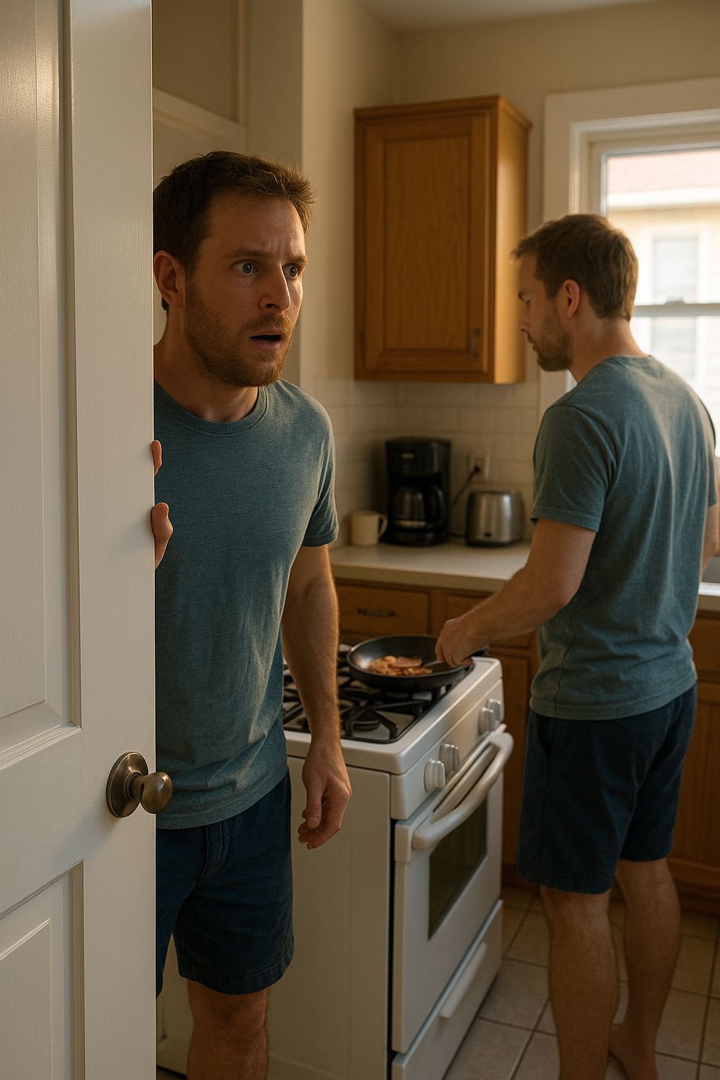 A hasonmásom lassan megfordult. Mosolygott – az én mosolyommal, csak nyugodtabb, élesebb volt. „Reggeli” – mondta. A hangja pontosan olyan volt, mint az enyém. „Ülj le. Erőre lesz szükséged.”