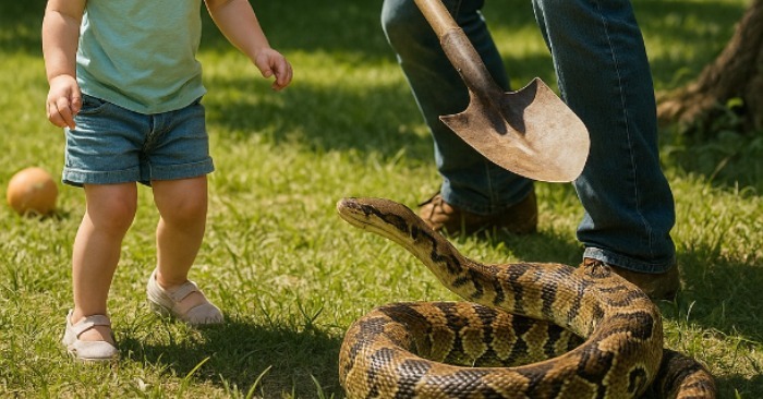 Megragadtam a lapátot, ami a pajta falánál állt, és az utolsó pillanatban sikerült eltolni a kígyót a gyerektől. A feleségem kirohant a házból, és Maryt magához szorította.