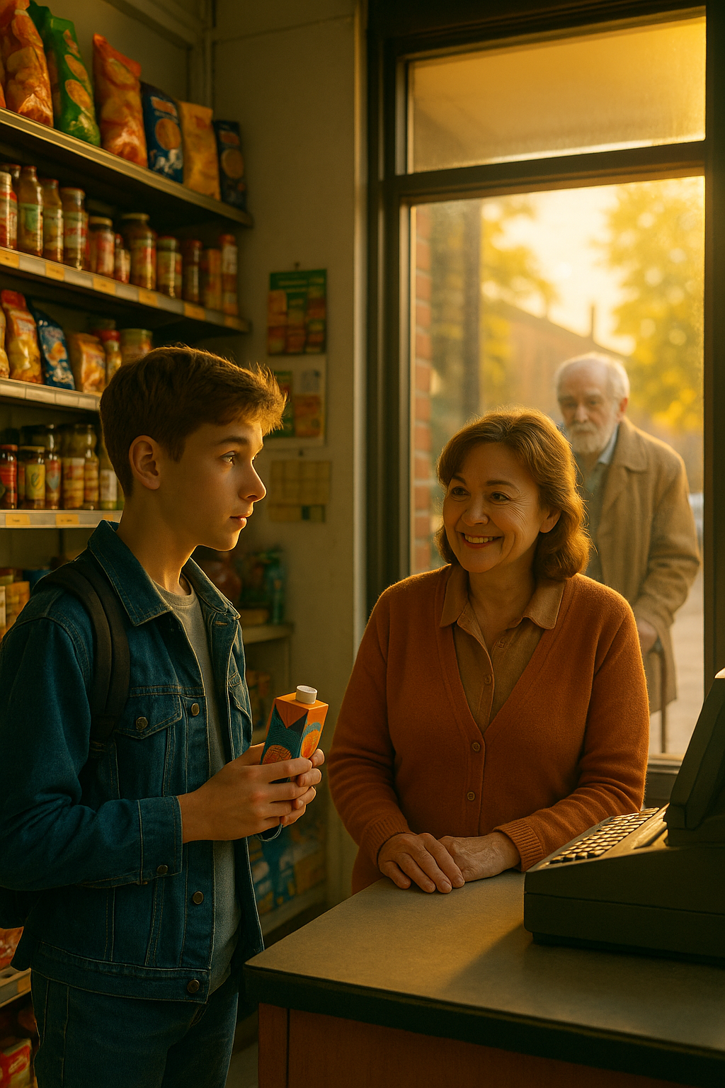 Dima, a vékony kamasz fiú, zilált iskolatáskával, rohant a kis bolt felé, ahol mindig ugyanazt vette: narancslevet, szívószállal.