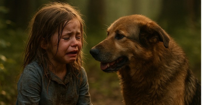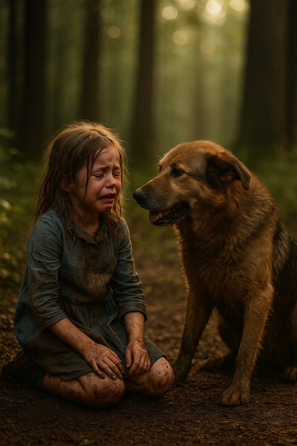 Kinyitották az ajtót — és a tornácon meglátták a kutyát. Hatalmas, bozontos, csuromvizes, szomorú szemekkel. A mancsai remegtek, a szőre összetapadt, és a nyakán egy elszakadt, régi szíjdarab lógott.