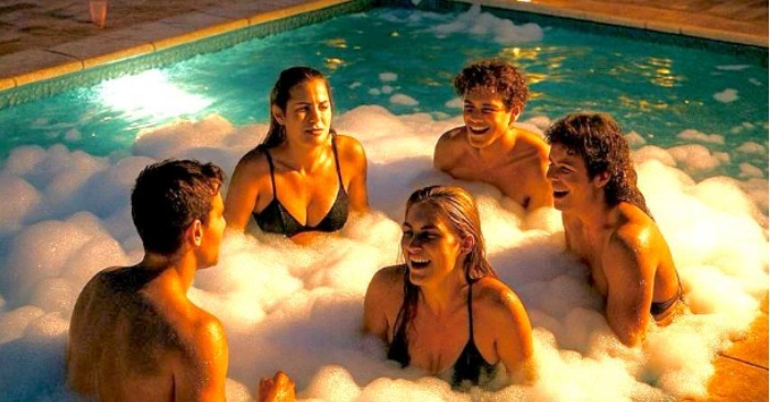 Két tinédzser volt – egy fiú és egy lány. Mindketten fürdőruhában, egy hatalmas üveggel, ami habfürdőnek tűnt. Átmásztak a kerítés hátulján (ahol, mint később kiderült, a háló kissé laza volt), csendben felkapcsolták a medence lámpáját… és elkezdték közvetlenül a vízbe önteni a habfürdőt.