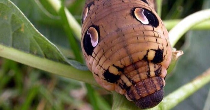 Egy hernyó volt. Egy hatalmas. Vastag, mint egy ujj, és majdnem olyan hosszú, mint egy tenyér. A bőrén olyan nyomok voltak, amelyek feltűnően hasonlítottak a szemekre… és két „fejre”.