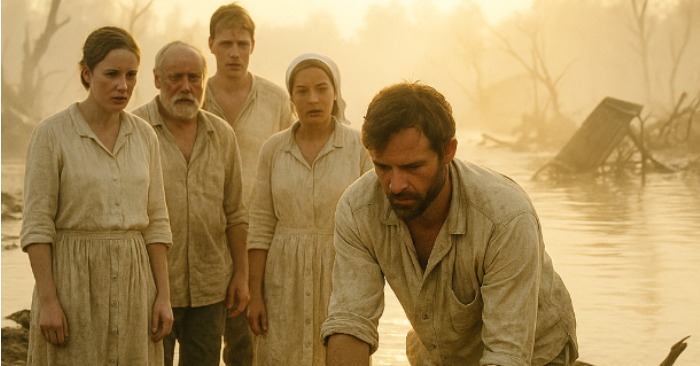 A köd alacsonyan lógott, szürkésfehér, mint a vatta. A falu felét még víz borította, de már nem emelkedett. Azok, akik maradtak, csendben álltak. Néhányan sírtak. Néhányan csak a semmibe bámultak.