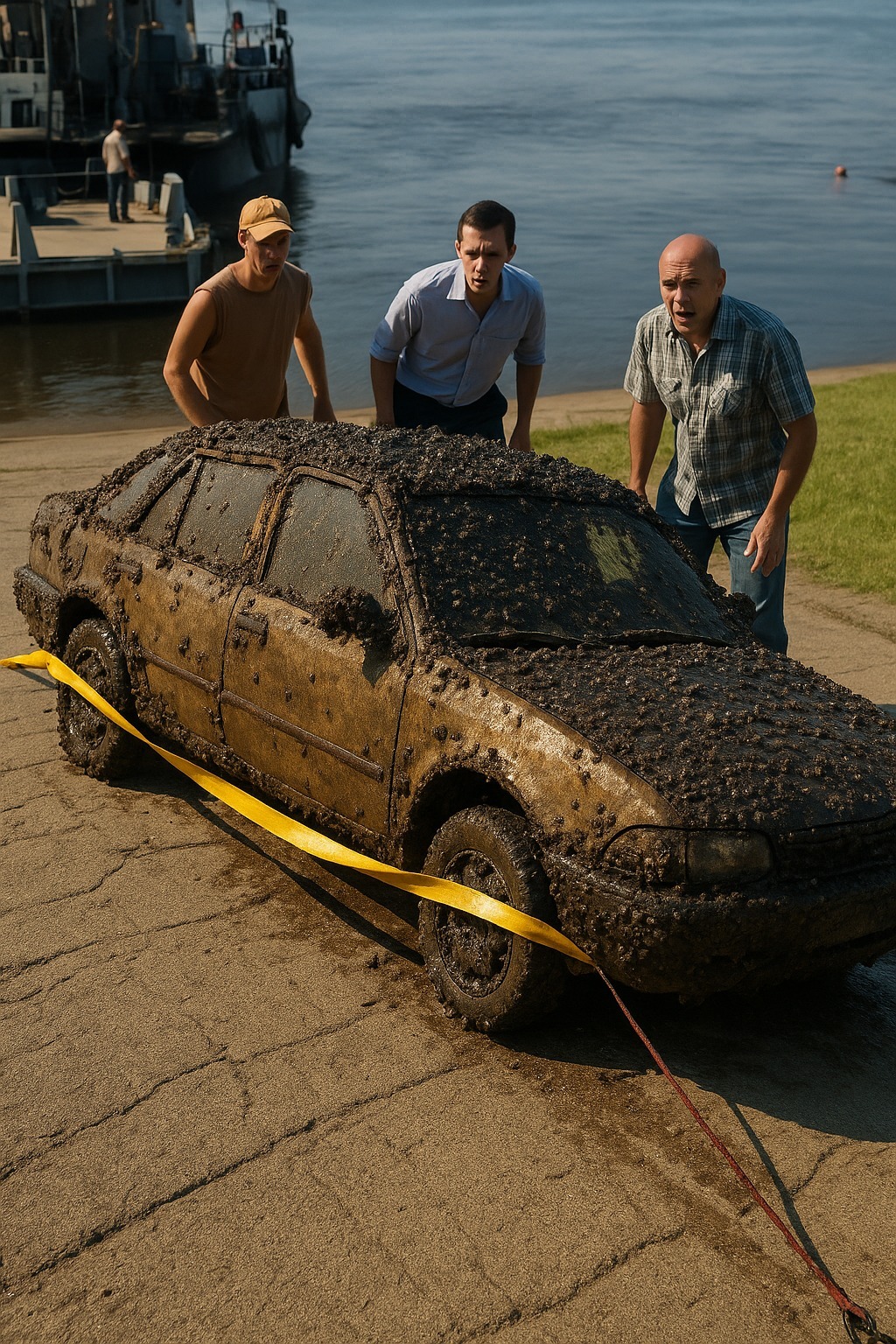 Az autó mélyen eltemetve volt – az áramlatok és az iszap szó szerint „beszippantotta” a folyómederbe az évek során. A kiemelés több órát vett igénybe: csörlők küszködtek, hogy kihúzzák a nehéz, fekete vízzel csöpögő testet. Amikor az autó végre a felszínre került, mindenki, aki a parton állt, elhallgatott.