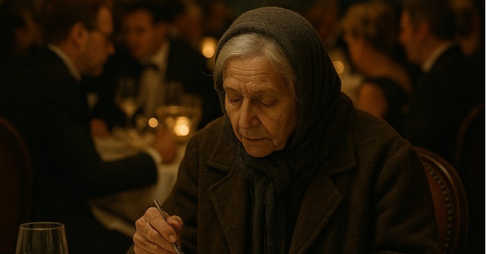 A vendégek arcai megváltoztak. A nevetés elhallgatott. Valaki csendben lesütötte a szemét. A nő folytatta: