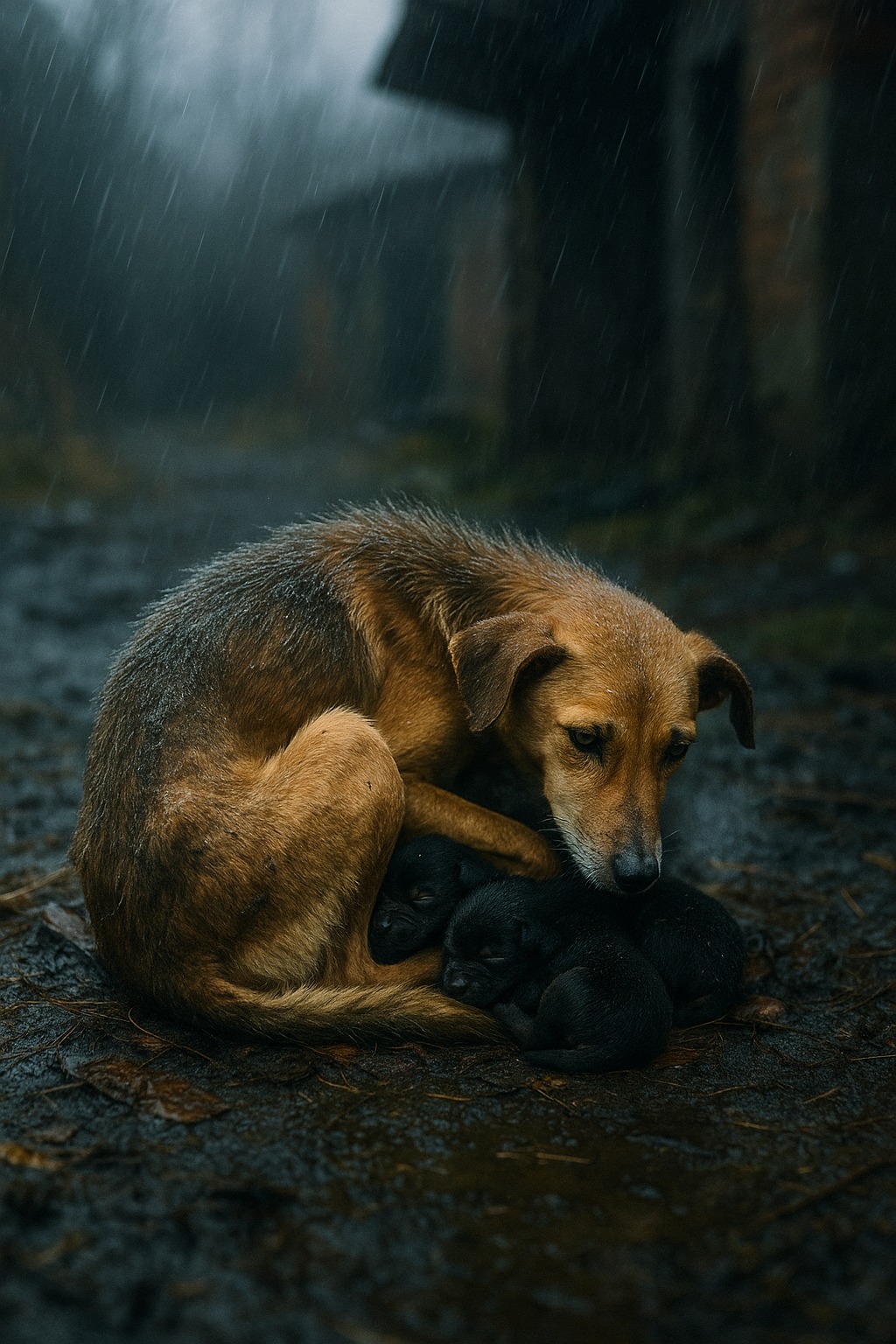 A kutya ott volt. Nem mozdult. Csak a szemei – hatalmasak, sötétek, tele félelemmel és reménnyel. Óvatosan beletette a kölyköket a dobozba, és becsomagolta őket. Aztán betakarta egy takaróval. De amikor megpróbálta felemelni a kutyát, a kutya meg sem mozdult.