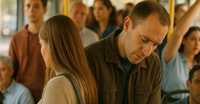 A táska kissé kinyílt. A cipzár megcsúszott. A pénztárca eltűnt – simán, csendben, mintha egyszerűen a busz mozgásának része lenne. A nő semmit sem érzett. De egy ember látta. Egy húsz év körüli fiatalember, nyakában fejhallgatóval, kissé oldalra állt. Mindent észrevett – a táskán végigsimító kezet, a cipzár nyílását, a pénztárca gazdát cserélését.