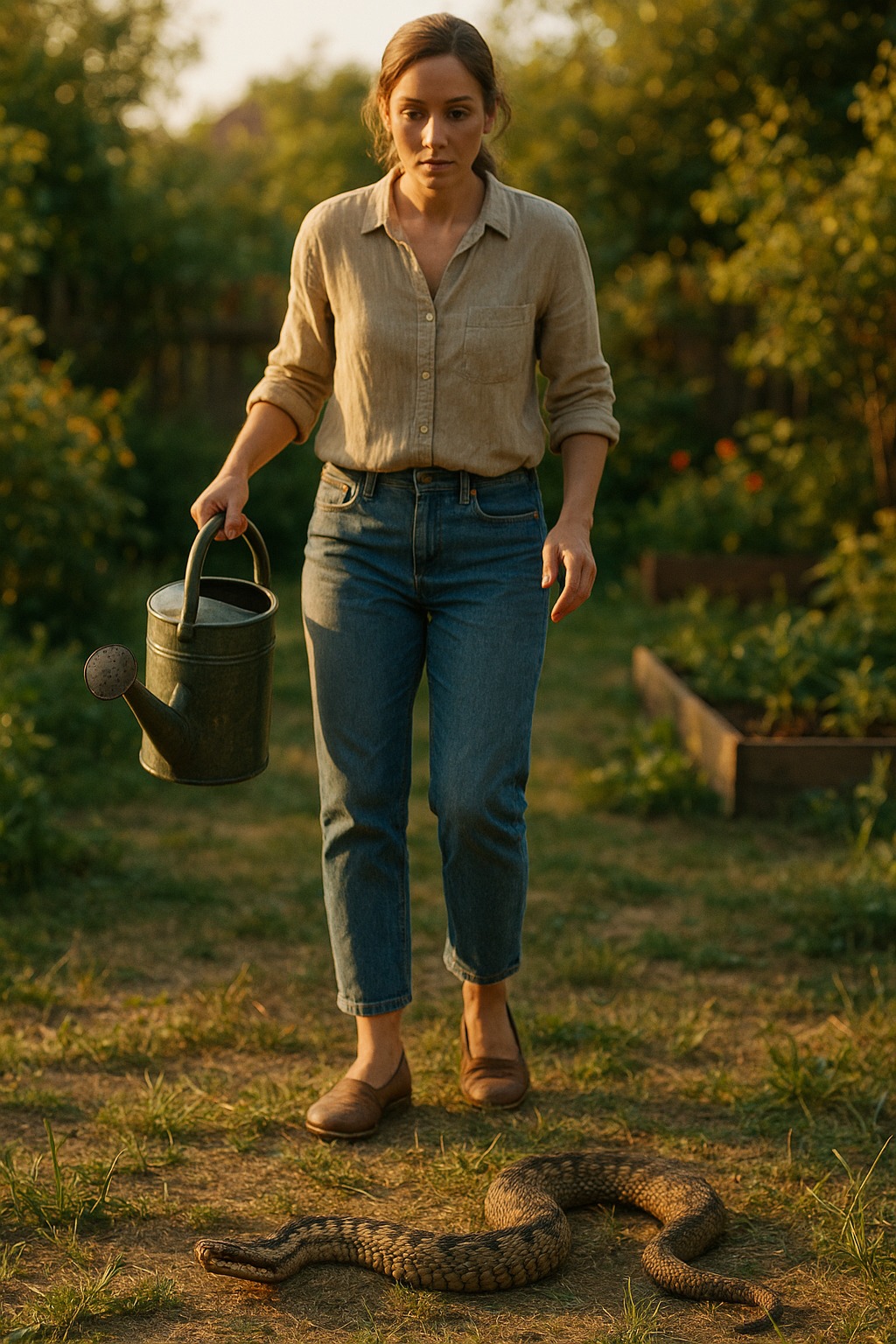 A szíve hevesen vert, majd megállt. A hátán lévő minták alapján felismerte: vipera volt. Mérges. Nem csak „veszélyes” – akár ölhet is, ha nem ér időben orvoshoz. A kígyó megállt a lábánál. Nem volt köztük több tizenöt centiméternél. Bármilyen mozgást fenyegetésnek lehetett érzékelni. A nő ott állt, még csak nem is lélegzett. Az öntözőkanna még mindig a kezében volt, egy vékony vízsugár csordogált a földbe, egy kis tócsát képezve a kígyó lábánál.