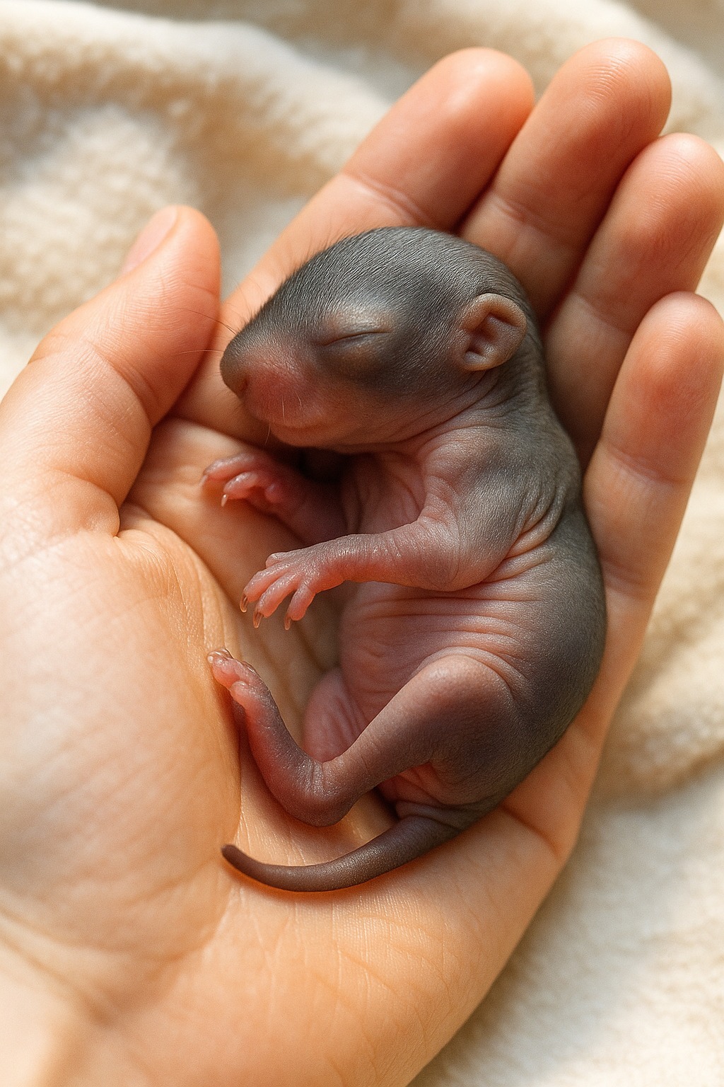 A történet egy teljesen átlagos, csendes napon kezdődött. Az Erdő Szíve állatmenhely váratlan hívást kapott: egy helyi lakos egy apró, fényes, sötét bőrű lényt hozott be, akit első pillantásra lehetetlen volt azonosítani. A baba szeme még csukva volt, apró teste alig lélegzett, és a bőre szaténként csillogott a fényben.