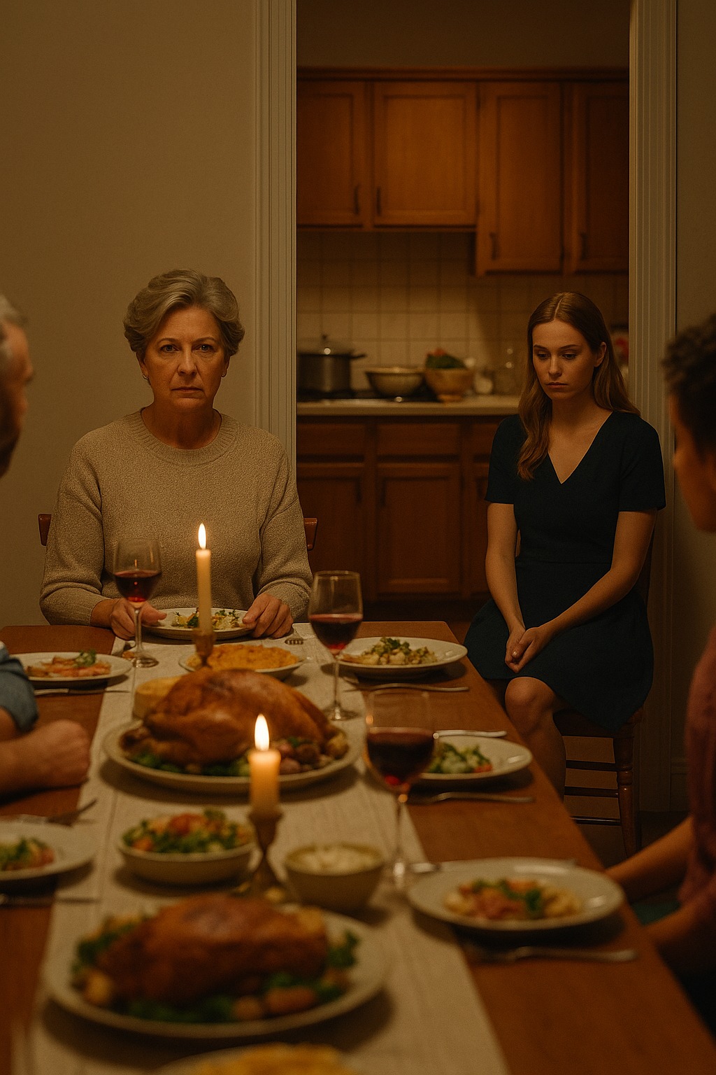 „Anya, talán Anna leülne velünk?” – javasolta óvatosan a férje. – Nem, nem, először hadd vigyázzon a kicsikre a konyhában – felelte, miközben bort töltött magának. – A felnőttek az asztalnál, aztán a gyerekek és a fiatalok.