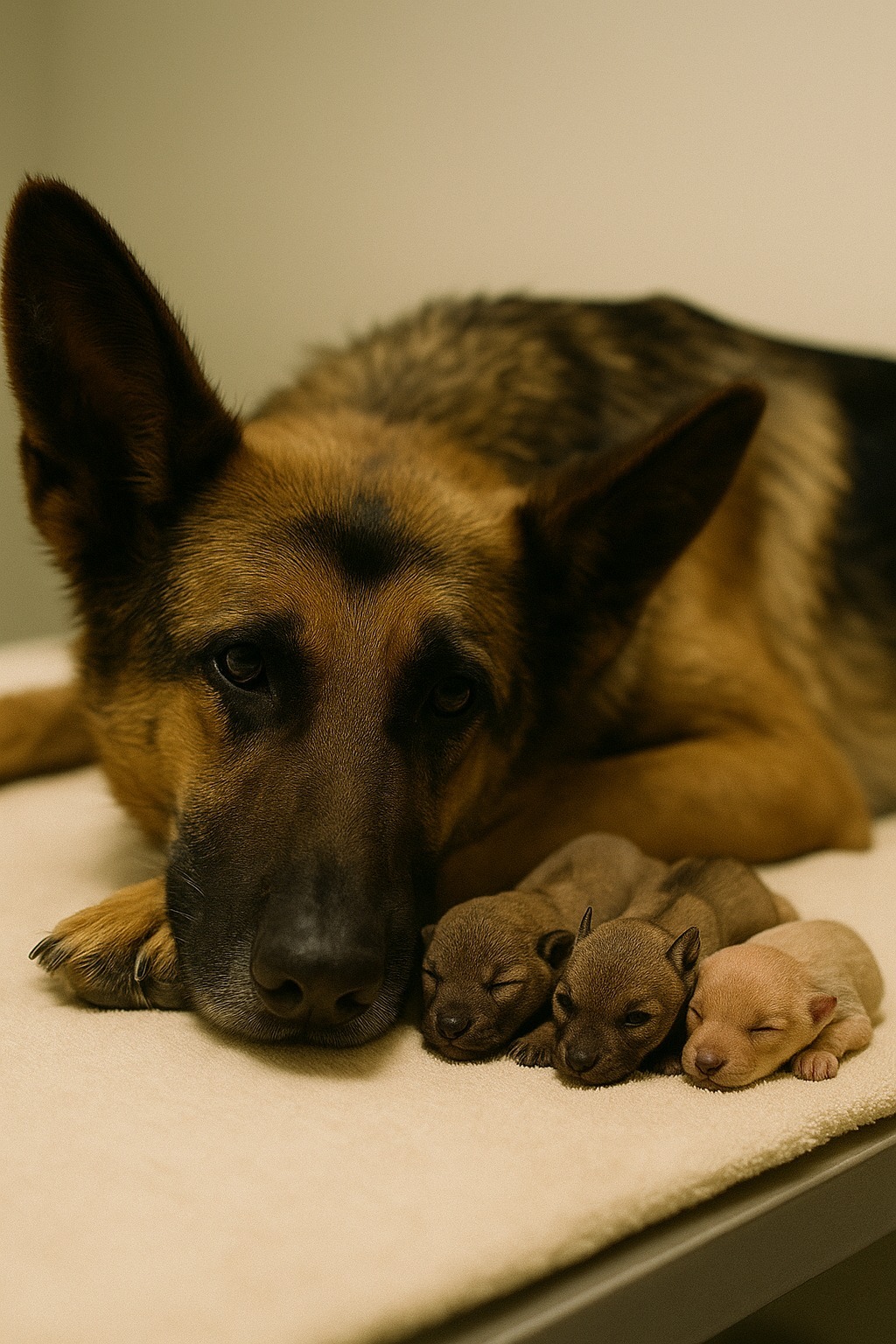 Közelebb ment, majd megállt. Egy németjuhász feküdt előtte. Sovány, vizes, didergő. A hasa nagy volt – túl nagy. A kutya vemhes volt, és teljes erejével kapaszkodott az életbe.