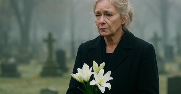 A szíve hevesebben kezdett verni. Körülnézett – senki sem volt a közelben. Csak egy varjú a közeli kerítésen és egy gyertya halvány füstje szállt. A nő leguggolt, hogy megvizsgálja a csokrot, és észrevett egy apró kártyát a táblán. Ez állt rajta: „Hiányoztál, Rita.” A kézírás túlságosan is ismerős volt.