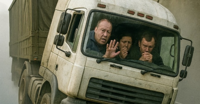 A hegyi út üres és csendes volt, amikor egy robajlás hasított át a reggeli ködön. Egy hatalmas fehér teherautó, miután elvesztette az uralmát egy kanyarban, áttört egy fémkorláton, és megállt, a mélység felett lebegve.
