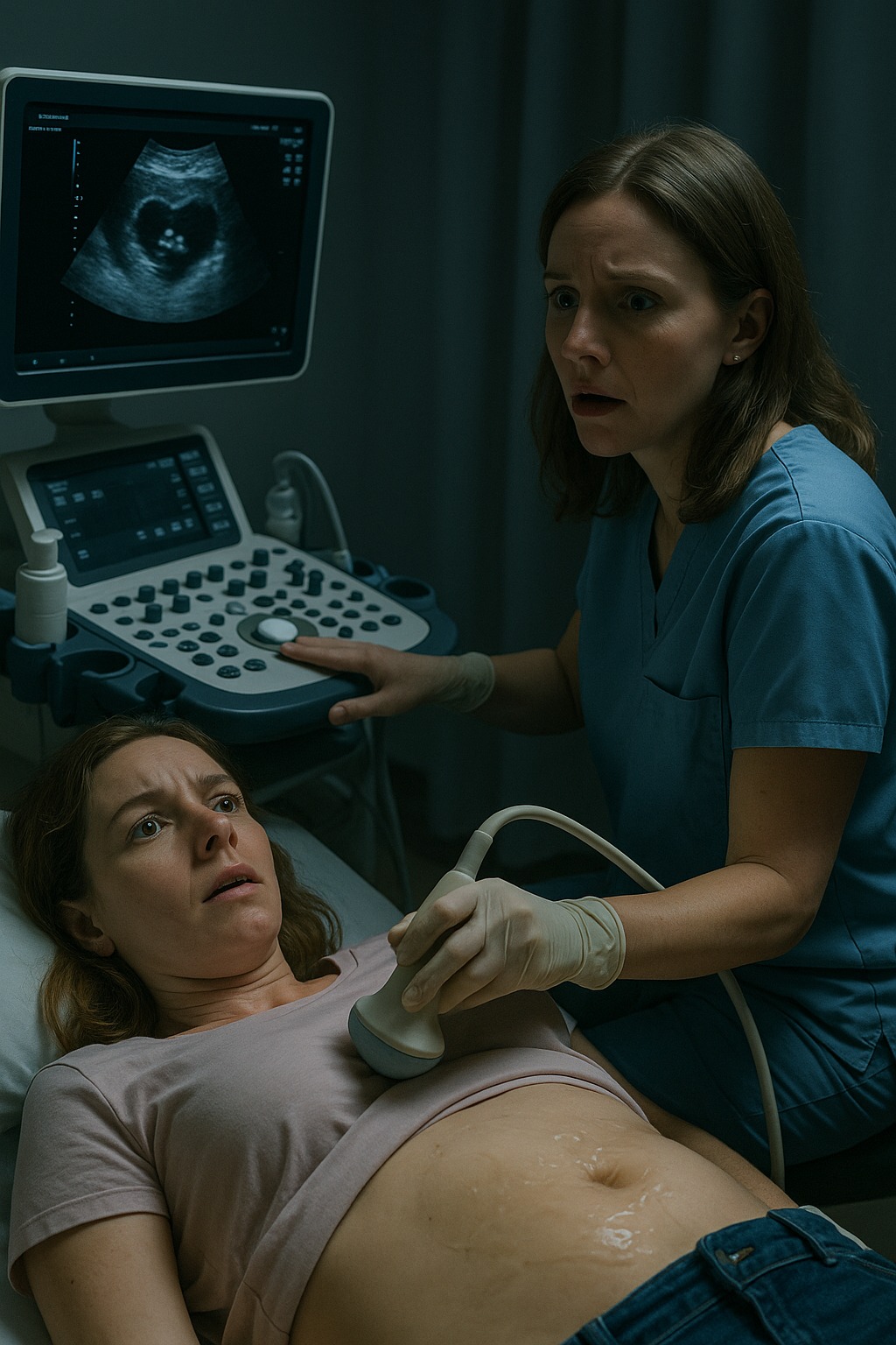 Anna a mennyezetet bámulta, hallgatta, ahogy az átalakító siklik a bőrén. Árnyékok villództak a képernyőn – hétköznapi, elmosódott alakzatok. Az orvos hallgatott, csak kémlelt. Aztán ráközelített a képre, megváltoztatta a szöget, és összevonta a szemöldökét. „Ez furcsa…” – motyogta. „Biztos benne, hogy nem terhes?”