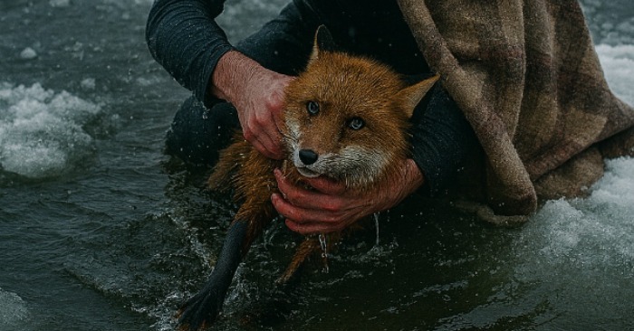 Megragadta a nyakánál fogva, magához húzta, és a hidegtől vacogva elkezdte a part felé küzdeni magát. A halászok segítettek mindkettőjüket kihúzni, a férfit egy takaróba, a rókát pedig egy régi kabátba csavarták, hogy melegen tartsa.