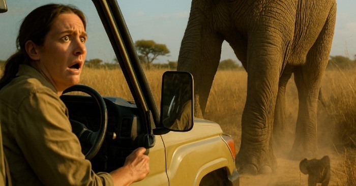 Amikor az autó megállt egy kiszáradt folyómederben, hogy a turisták lefényképezhessék a távolban legelésző zebracsordát, egy elefánt csendben megjelent mögöttük. Hatalmas, poros, lenyűgöző agyarakkal, olyan csendben tűnt fel, mintha a földből nőtt volna ki.