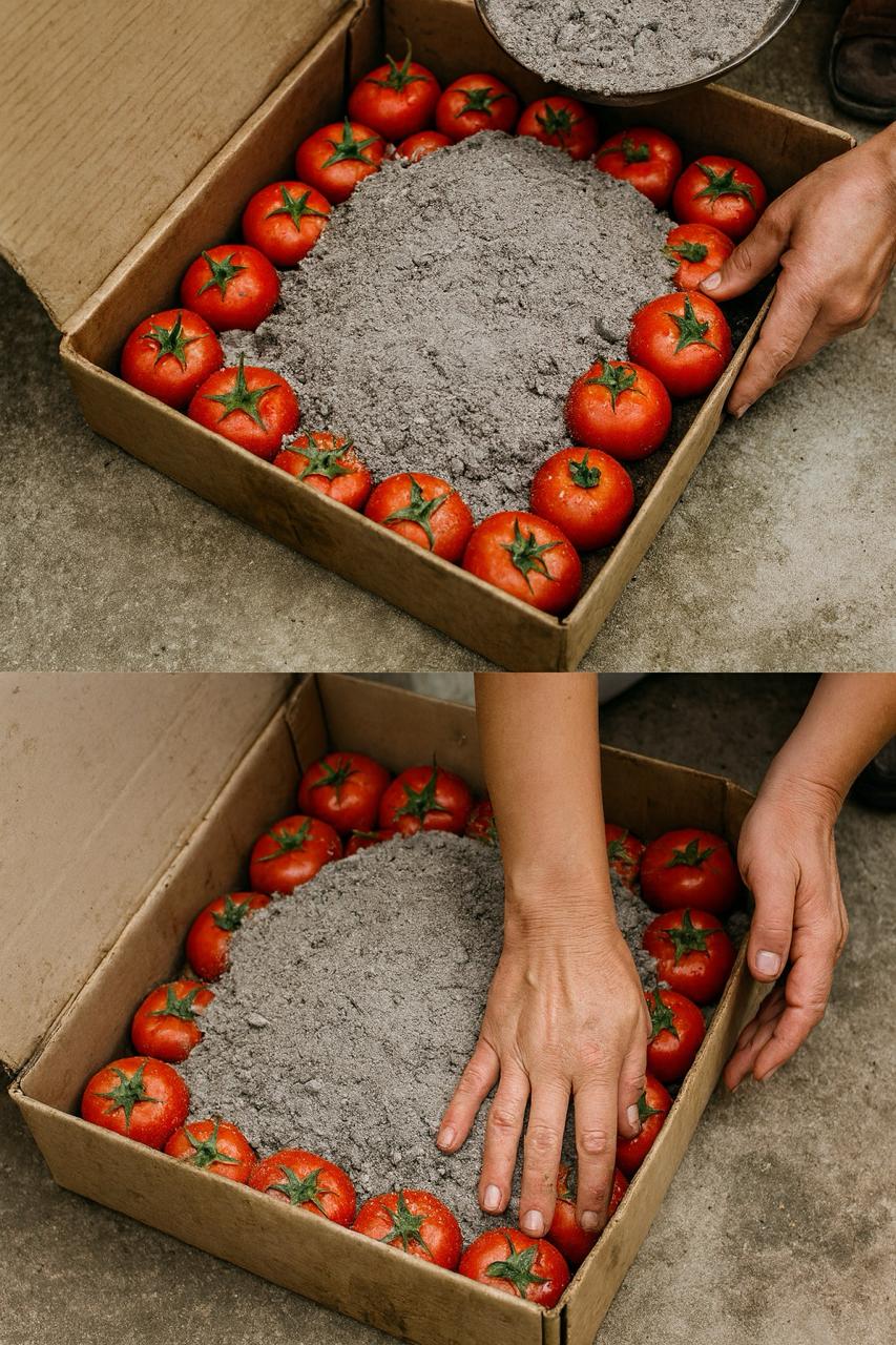 Amikor láttam, hogy anyukám óvatosan teszi az érett piros paradicsomokat egy faládába, semmit sem gyanítottam. De aztán fogott egy kis vödör szürke fahamut, és… szó szerint beborította vele a paradicsomokat, mintha be akarná zárni őket.
