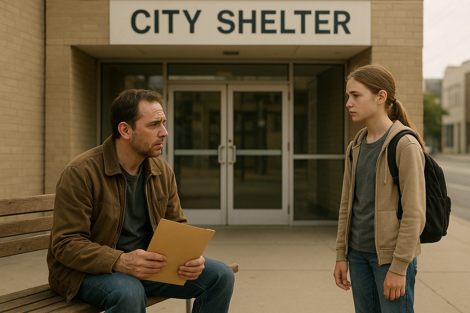 Emma a városi menedékház hideg ablaktáblájához nyomta a homlokát, lehelete apró felhőket hagyott az üvegen. Kint, a bejárat melletti kopott fapadon Mark ült – a férfi, akit még mindig kényszerítette magát, hogy apának szólítson. Egy vékony mappa remegett a kezében. Folyamatosan az óráját nézegette, majd az ajtót, aztán újra a mappát.