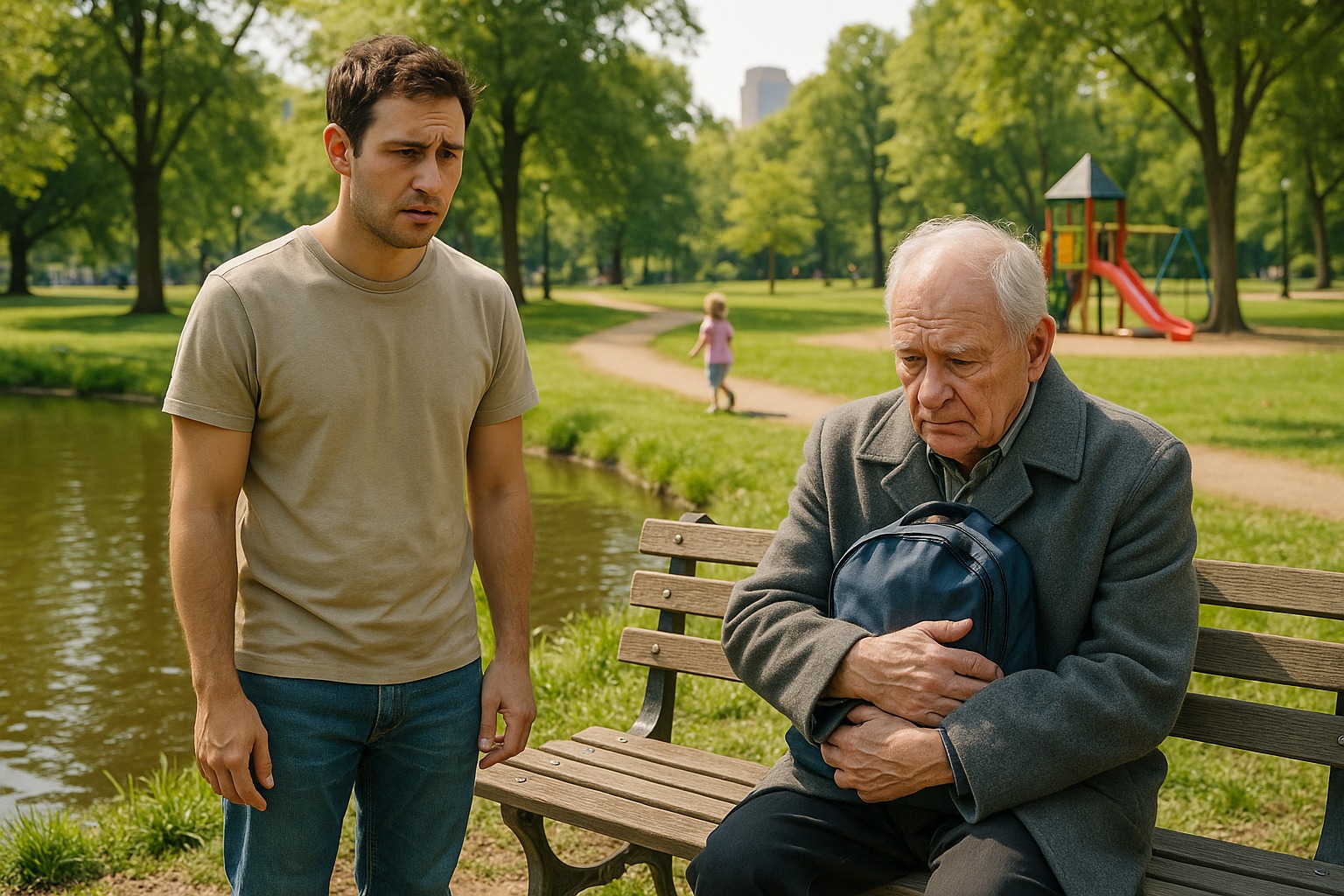 Az öregember minden nap ugyanazon a padon ült egy apró kék hátizsákkal, míg egy esős délutánon egy idegen kihúzta a cipzárját, és rájött, miért nem engedi soha senkinek, hogy mellé üljön.