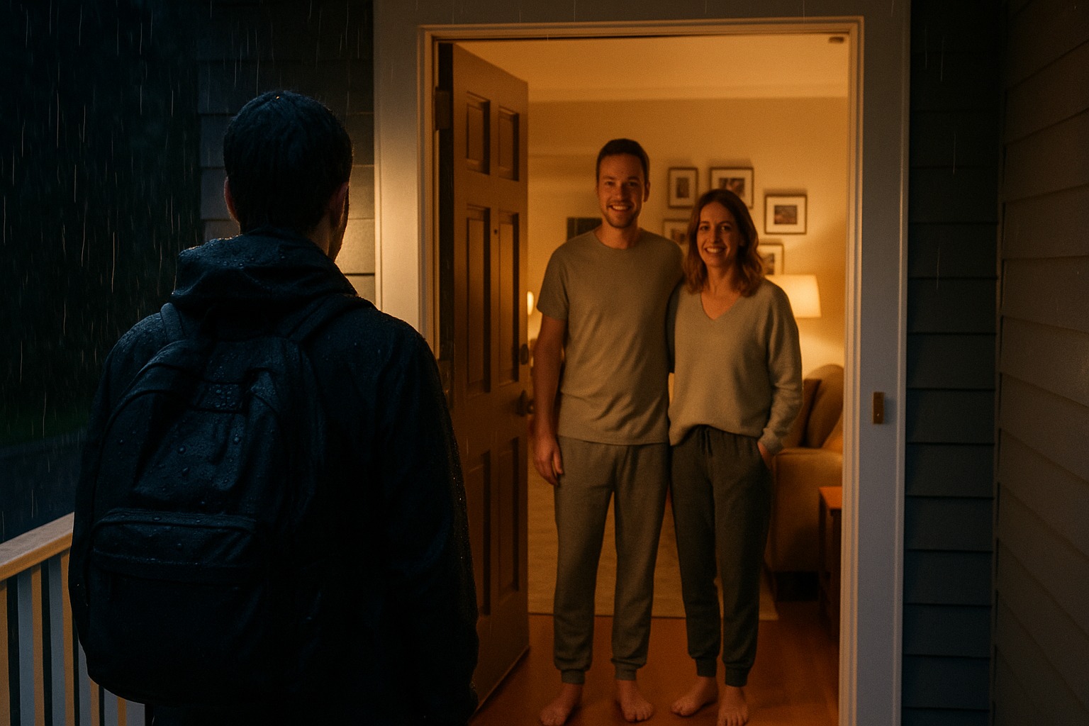 Azt hittem, félrehallottam. Késő volt, eső kopogott az ablakokon, a férjem, Mark a kanapén szundikált, a tévé halkan búgott. A csengő úgy hasított be a házba, mint egy sikoly. Amikor kinyitottam az ajtót, ott volt: kicsi, csuromvizes, talán kilencéves. A hátizsákja az egyik vállán lógott, egy olcsó rajzfilmfigura már hámlott róla.