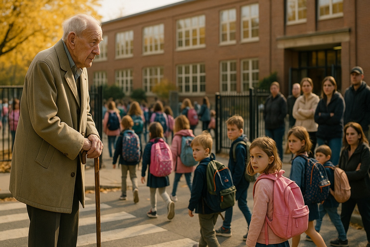 Három hónapon át, minden hétköznap pontosan 7:45-kor ott volt Daniel. Ugyanott, ugyanaz a testtartás: kissé görnyedt háttal, kezei egy régi bot nyelén összefonva, tekintete a kisvárosi iskolába ömlő gyerekek áradatára szegeződött.