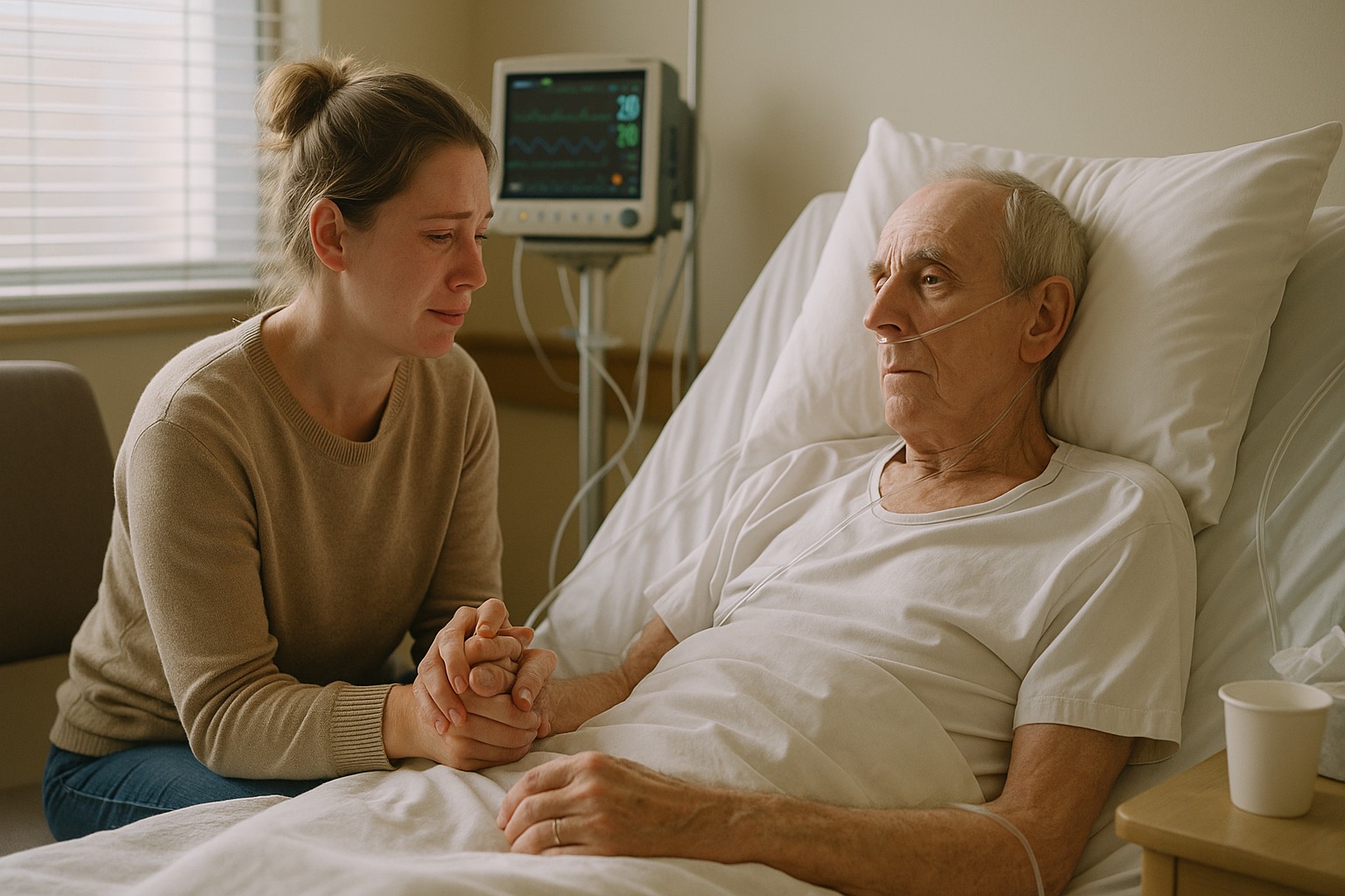 Két órával korábban Mia a 214-es szoba ajtajában állt, és nézte, ahogy apja úgy mered a bézs falakra, mintha ellenségek lennének. Vékony kezei remegtek, ahogy megpróbálta feljebb húzni a takarót, makacsul elutasítva a segítséget.