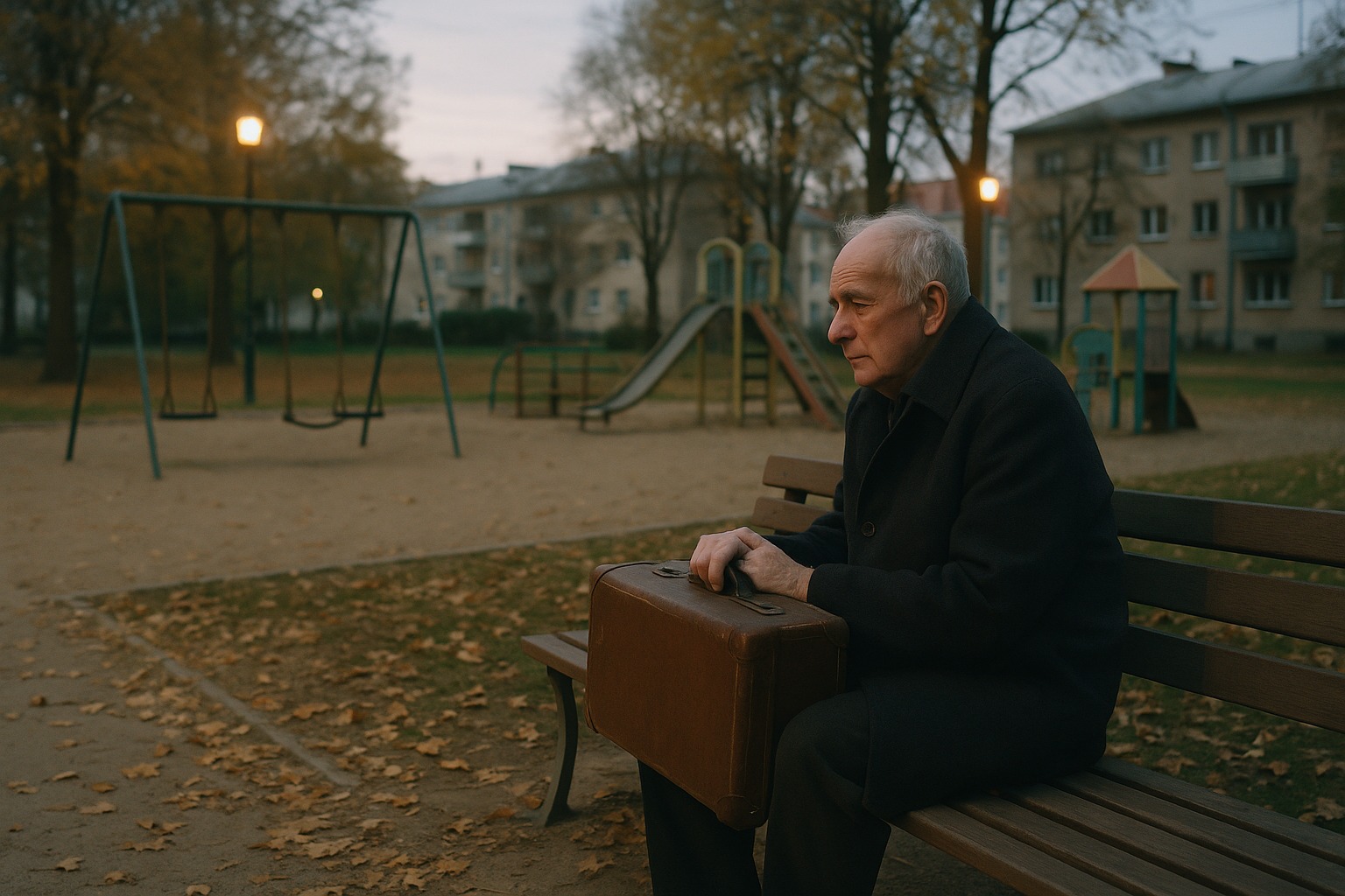 Pletykák keringtek körülötte. Egyesek azt mondták, hogy a feleségére vár, aki elhagyta. Mások azt suttogták, hogy valaha gazdag volt, és megőrült. A gyerekeknek egyszerűen csak „a bőrönd nagypapa” volt.
