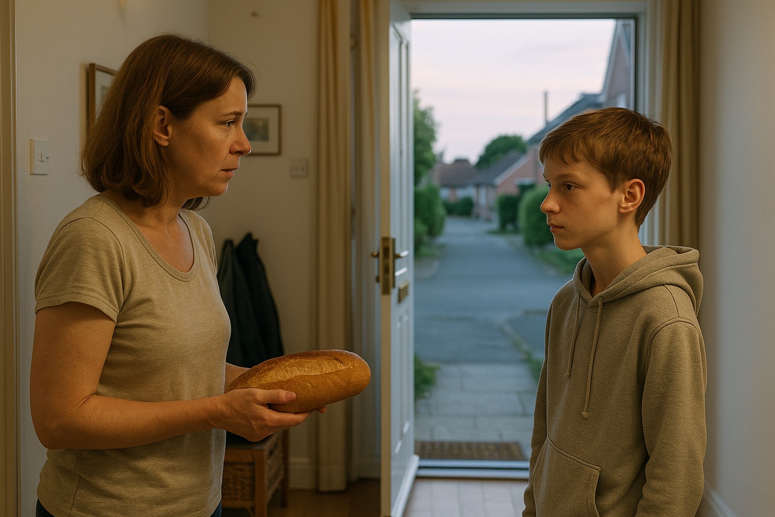 Először azt hittem, csak egy újabb szomszéd gyerek. Sovány, túlméretezett szürke kapucnis pulóverben, a haja a szemébe hullott. Soha nem nézett rám egyenesen. Csak állt ott, egyik lábáról a másikra állva, és motyogott: „Talán van… egy kis kenyered?”