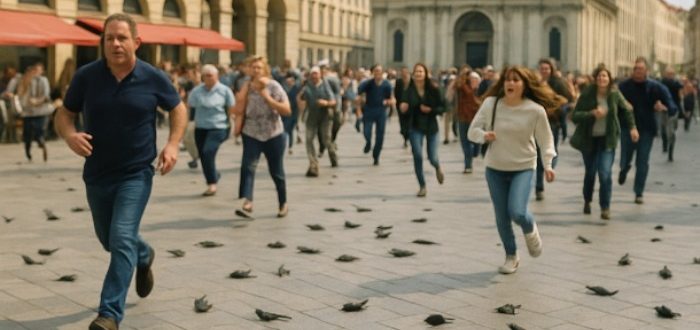 A tér mindig is nyüzsgött turistákkal, kávézókkal és utcazenészekkel. De azon a reggelen a szokásos városi zümmögést sikolyok szakították félbe. Először mindenki egy madarat látott leesni felülről. Aztán