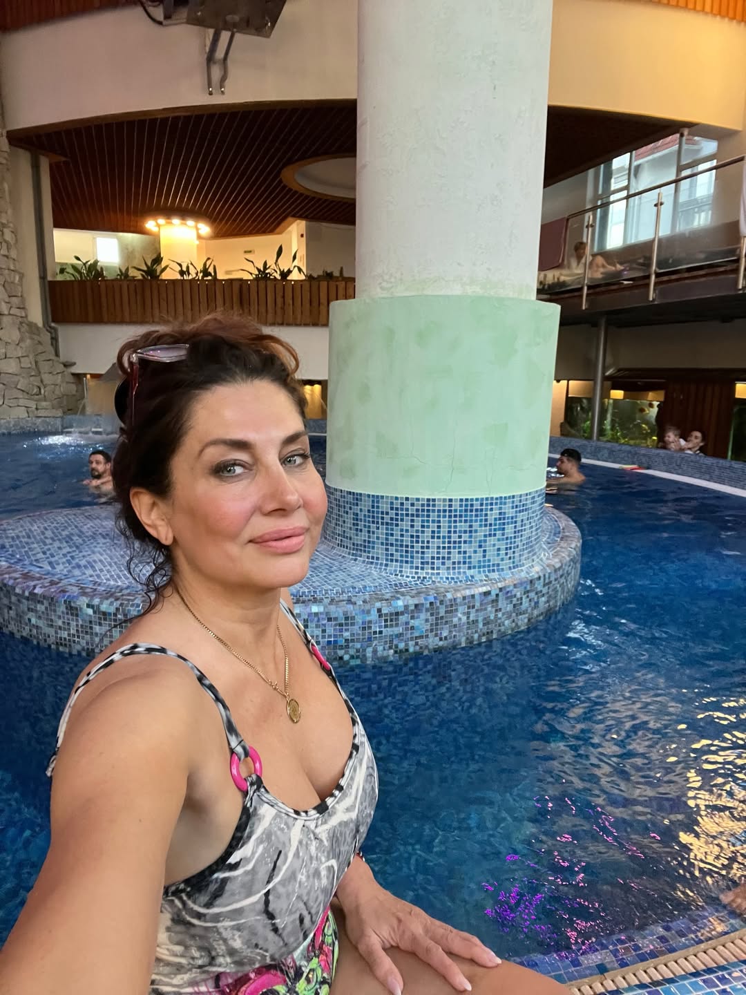 A friss Instagram-fotók Zalakaroson készültek, ahol Éva pihenéssel és feltöltődéssel töltött néhány napot. Egy szürke-rózsaszín mintás fürdőruhában csobbant a medencébe, és a képek alapján magabiztosan vállalja az alakját. A testhez simuló darab kiemeli formáit, a medence kékje és a napsütés pedig csak még inkább ráerősít a látványra.